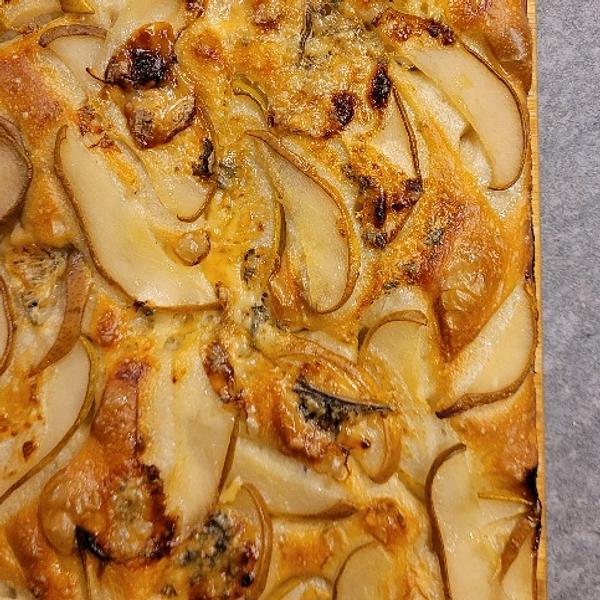 Foccacia z gruszką i gorgonzolą